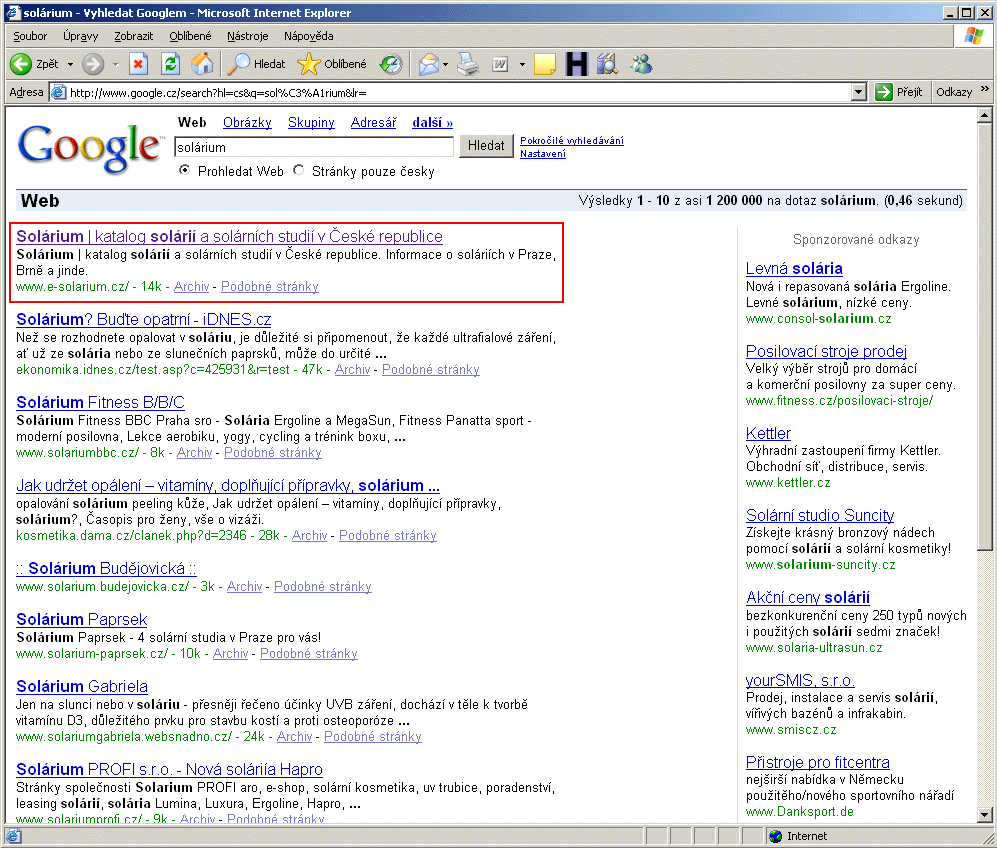 1. místo na Google na dotaz "solárium" - ukázat obrázek z 24. 10. 2007.